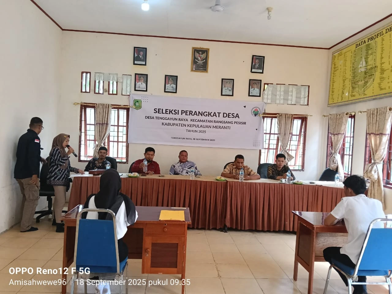 Tenggayun Raya, 18 September 2025 – Kasi Pemerintahan Kantor Camat Rangsang Pesisir, Mario Handono, S.TP., M.P, didampingi oleh Penata Kelola Pemerintahan, Muhammad Zikri Dyantika, S.IP, menghadiri sekaligus menjadi tim penguji dalam kegiatan penjaringan dan penyaringan Perangkat Desa Tenggayun Raya untuk Jabatan Kasi Kesejahteraan dan Layanan.
