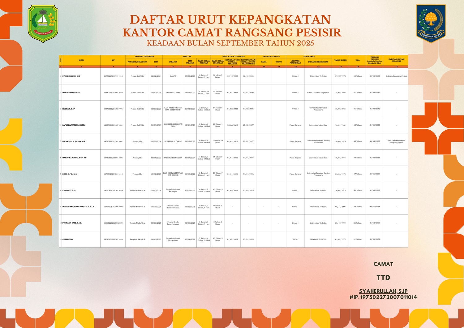 Daftar Urut Kepangkatan ASN Kantor Camat Rangsang Pesisir